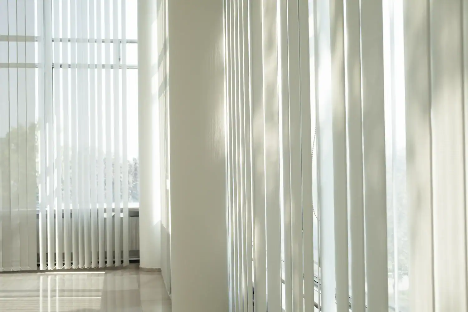 Vertical blinds are a traditional option for covering patio doors, sliding glass doors, or large windows. Our vertical blinds are made of durable and lightweight materials. They are available in many unique styles, including fabric and faux wood finishes to match your décor. The tiltable slats also allow for premium light control while still providing privacy. Stacking your vertical blinds on the left or the right, or splitting them in the middle, will enable you to enjoy your full view when they are open. Finish the look with a decorative valance or wood cornice to add depth and detail.