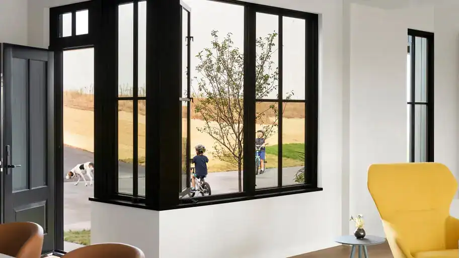 - Material: wood interior with vinyl exterior, offering the best of both worlds: timeless look and warmth of wood with the durability and low maintenance of vinyl